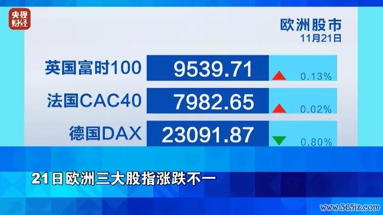 欧洲方面,周五,标普全球公司与德国汉堡商业银行联合公布的数据显示,由于需求疲软导致新订单量大幅减少,11月欧元区制造业采购经理人指数(PMI)初值降至49.7,跌入50荣枯线下方。主要经济体德国和法国制造业增长动能有所减弱,制造业PMI进一步跌入萎缩区间。投资者谨慎看待未来经济增长前景,欧洲三大股指涨跌不一。截至当天收盘,英国富时100指数上涨0.13%,法国CAC40指数上涨0.02%,德国DAX指数下跌0.80%。